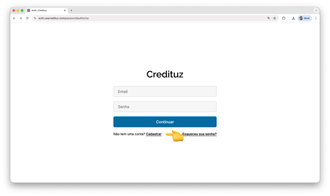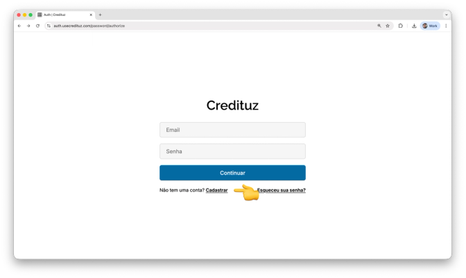 - Clique em Continuar com Senha na tela inicial de acesso a plataforma